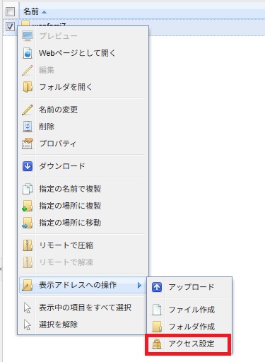 上部メニュー、もしくは右クリックから 表示アドレスへの操作→アクセス設定を選択 |